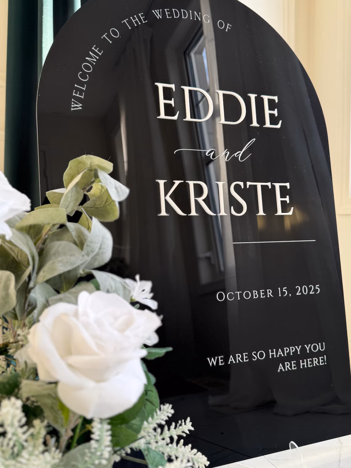 Glossy Black Wedding Sign – Arch Acrylic Wedding Welcome Sign with 3D Acrylic Name | Custom Wedding Sign | Wedding Signage – Ceremony Sign