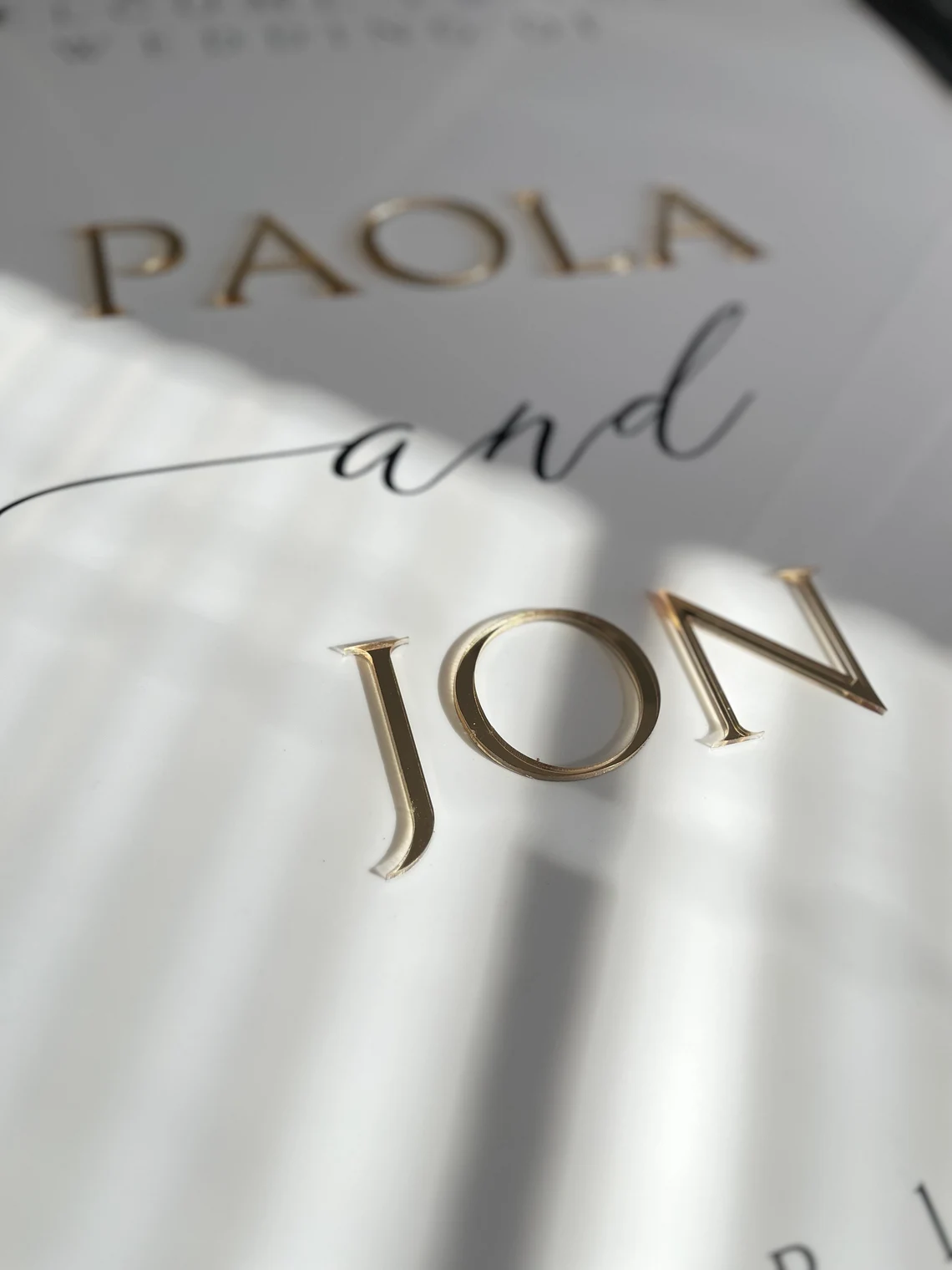 - 3D gold mirrored acrylic for the bride and groom’s names (or another colour of your choice)