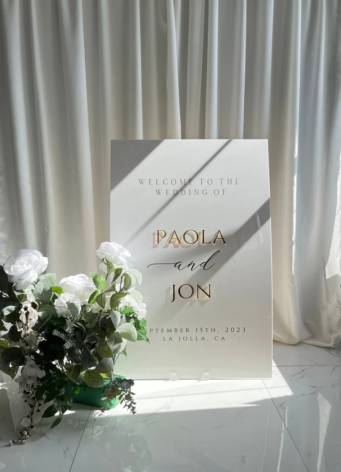 Welcome your guests in style with our stunning 3D acrylic wedding signs. Designed to add a personal and elegant touch to your special day, this sign is the perfect way to greet your guests and set the tone for your celebration.