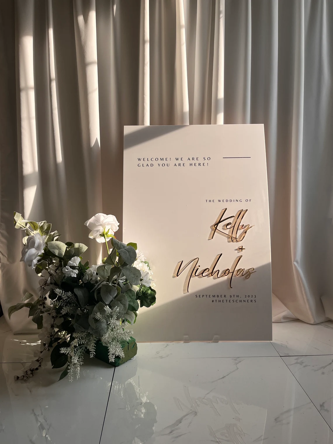 Welcome your guests in style with our stunning 3D acrylic wedding signs. Designed to add a personal and elegant touch to your special day, this sign is the perfect way to greet your guests and set the tone for your celebration.