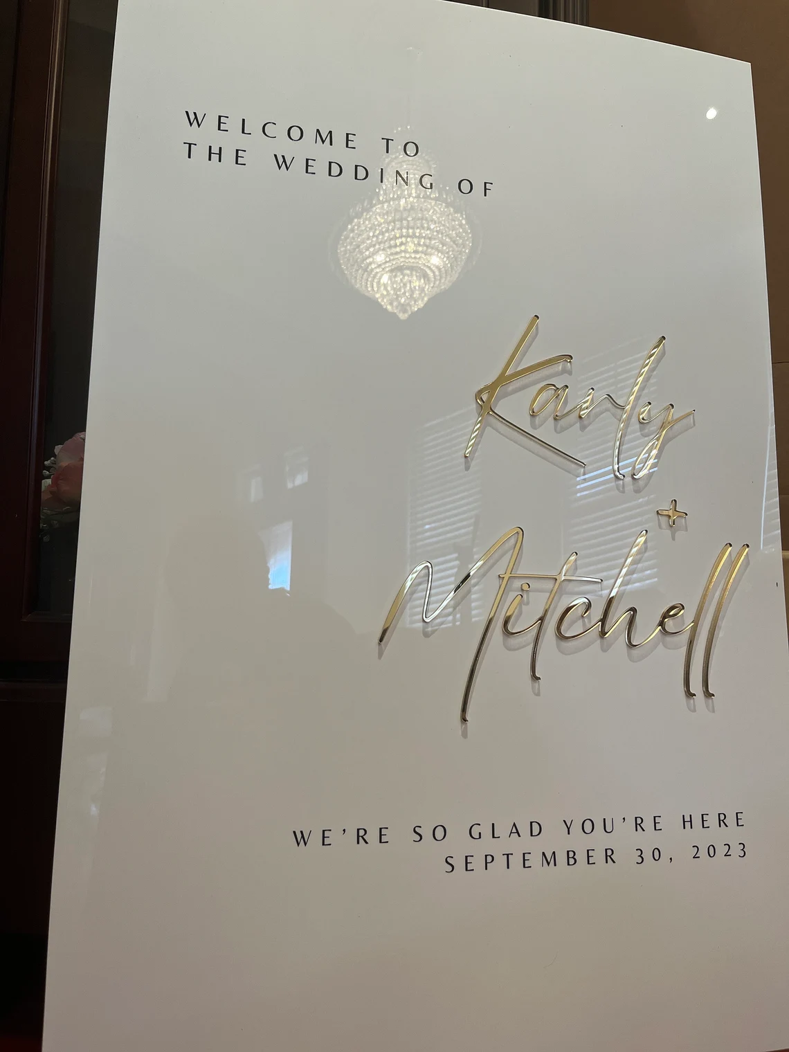 - 3D gold mirrored acrylic for the bride and groom’s names (or another colour of your choice)